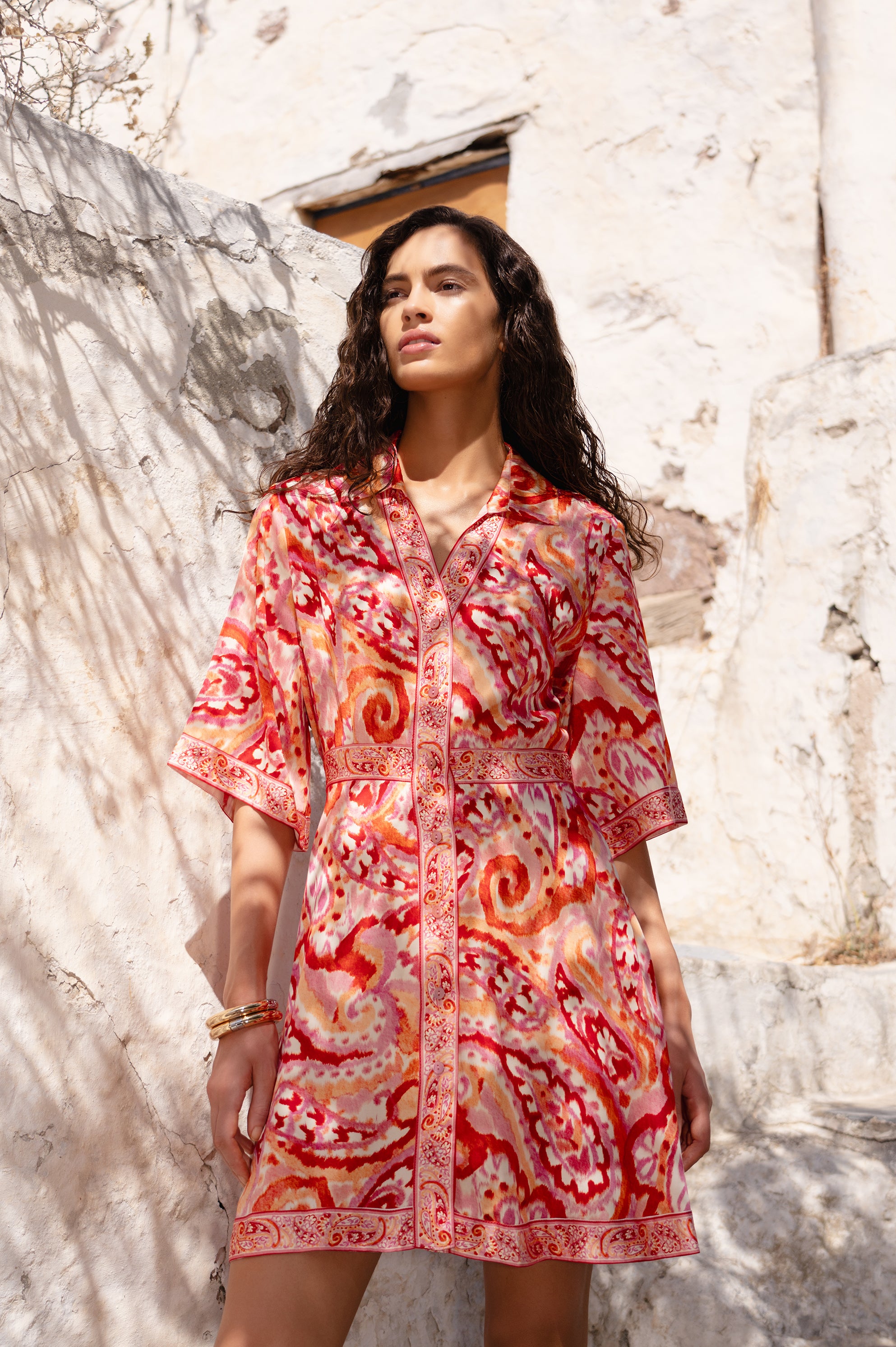This season opens a window to days drenched in colour. Statement prints, vivid pigments and wardrobe-grounding neutrals co-exist in capsule collections. Romantic pinks and hibiscus hues meet decadent butter yellows, seaside blues and luscious shades of green. Hand-painted paisleys and delicate florals chart a course of new classics.